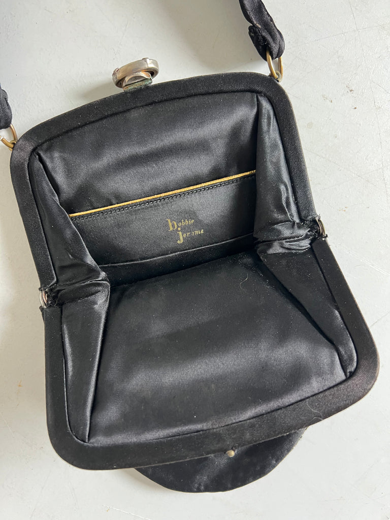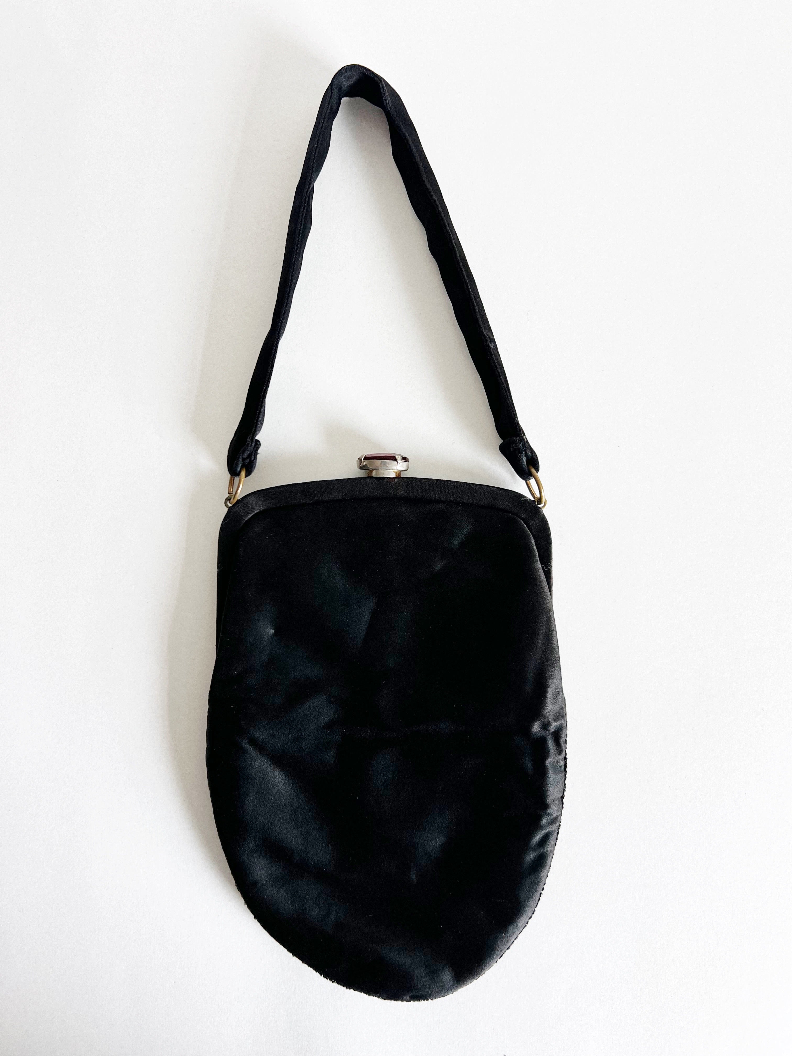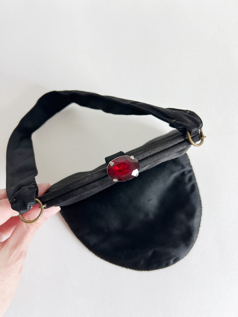 1950s Black Satin + Ruby Clasp Purse by Bobbie Jerome
