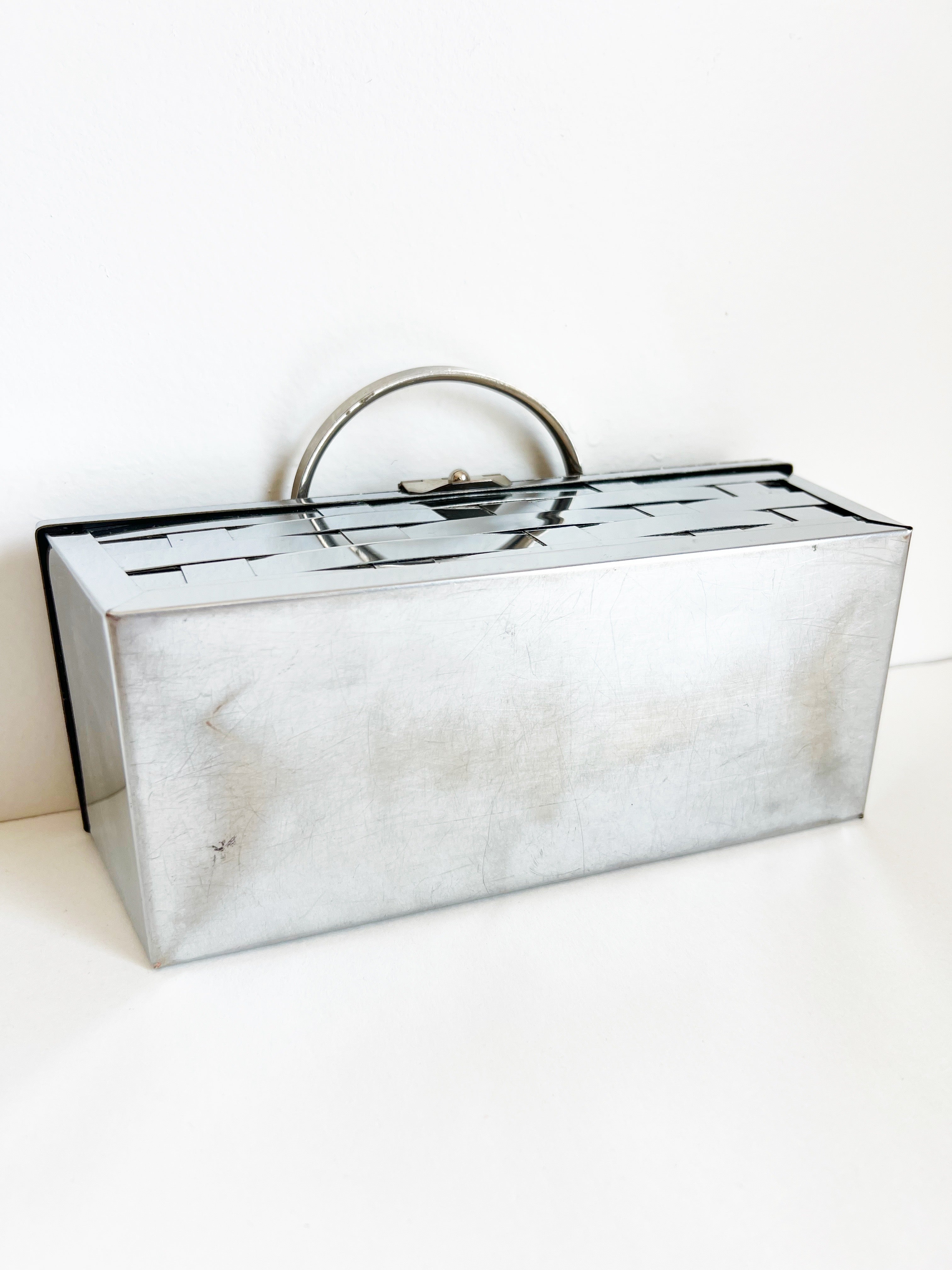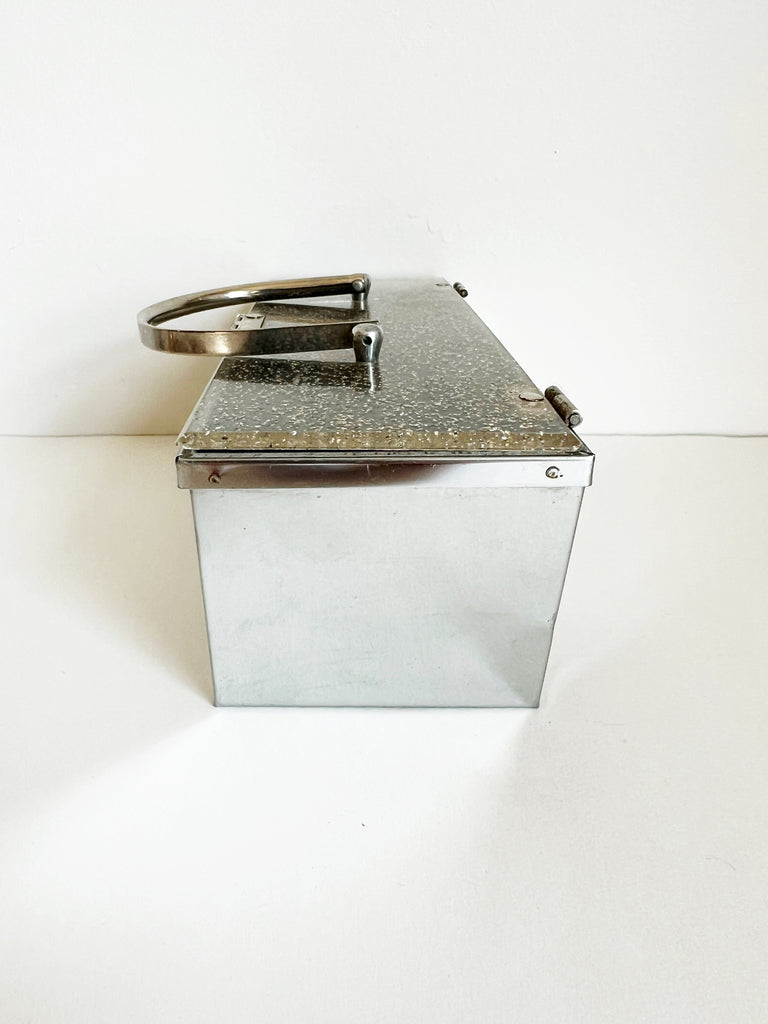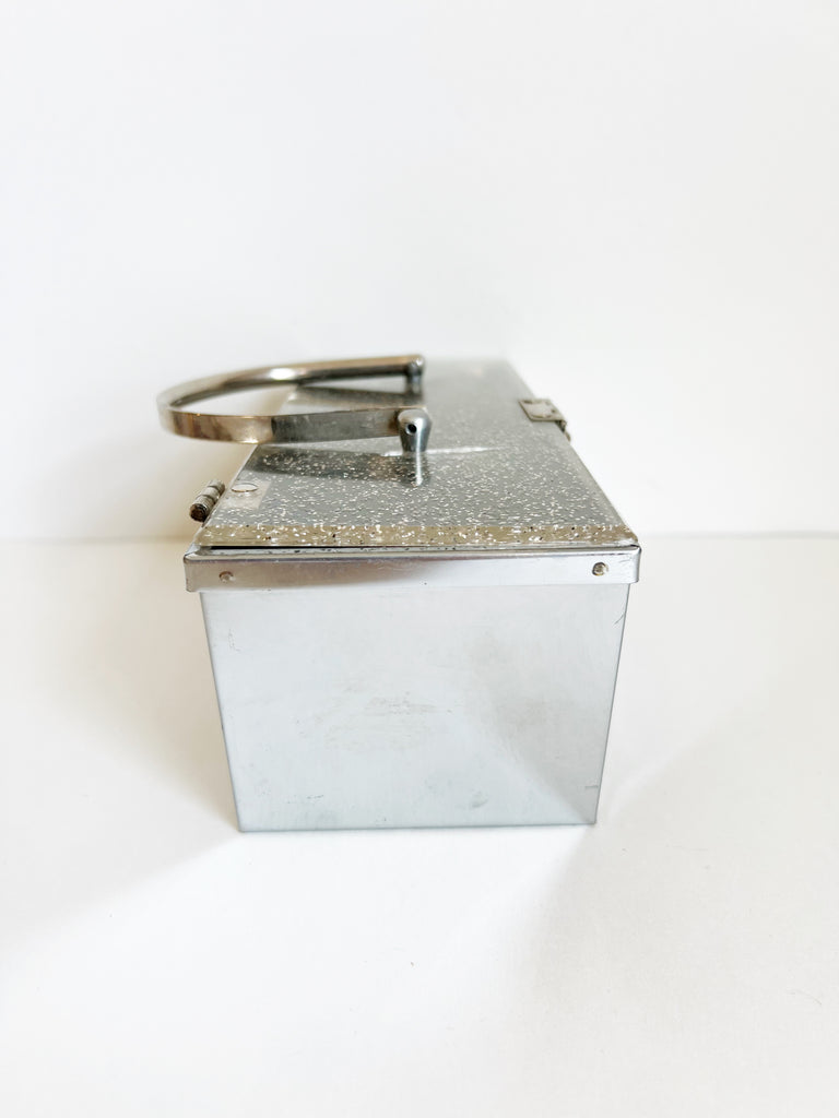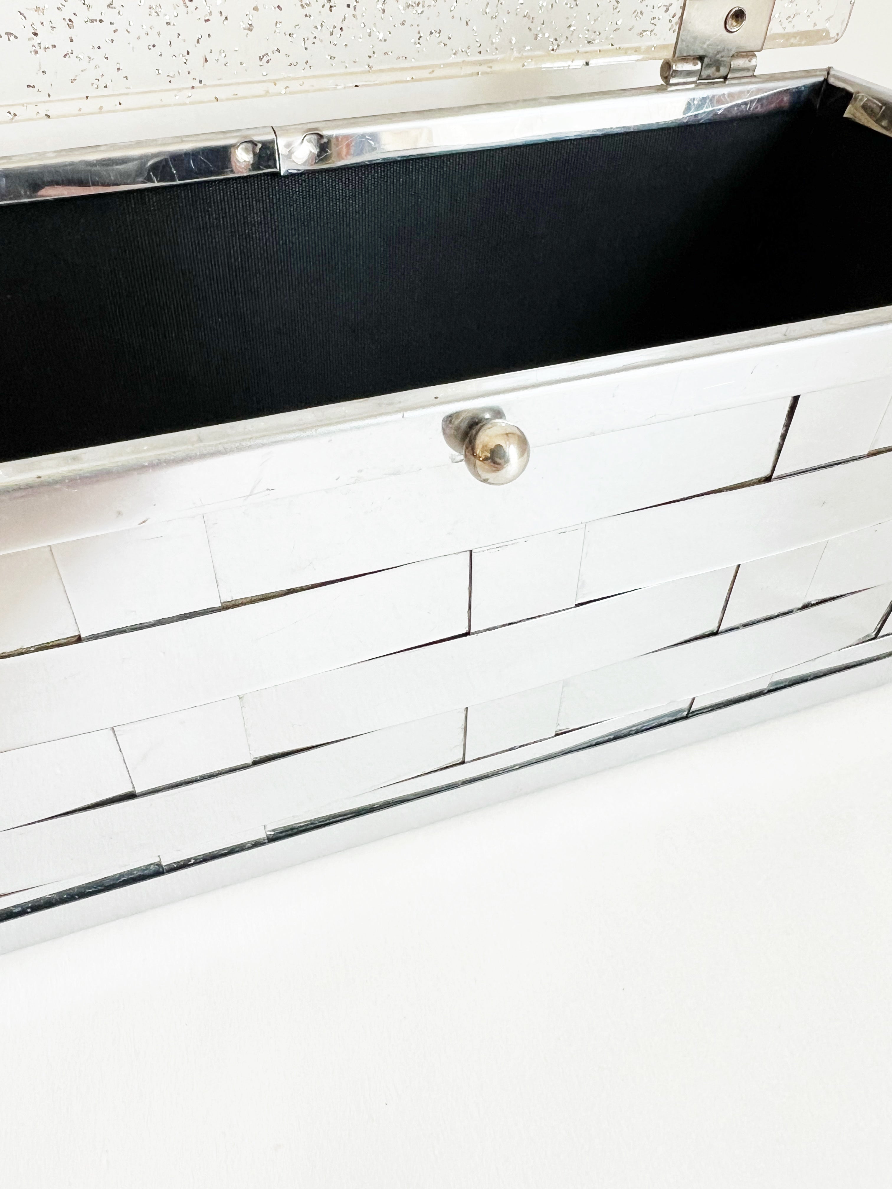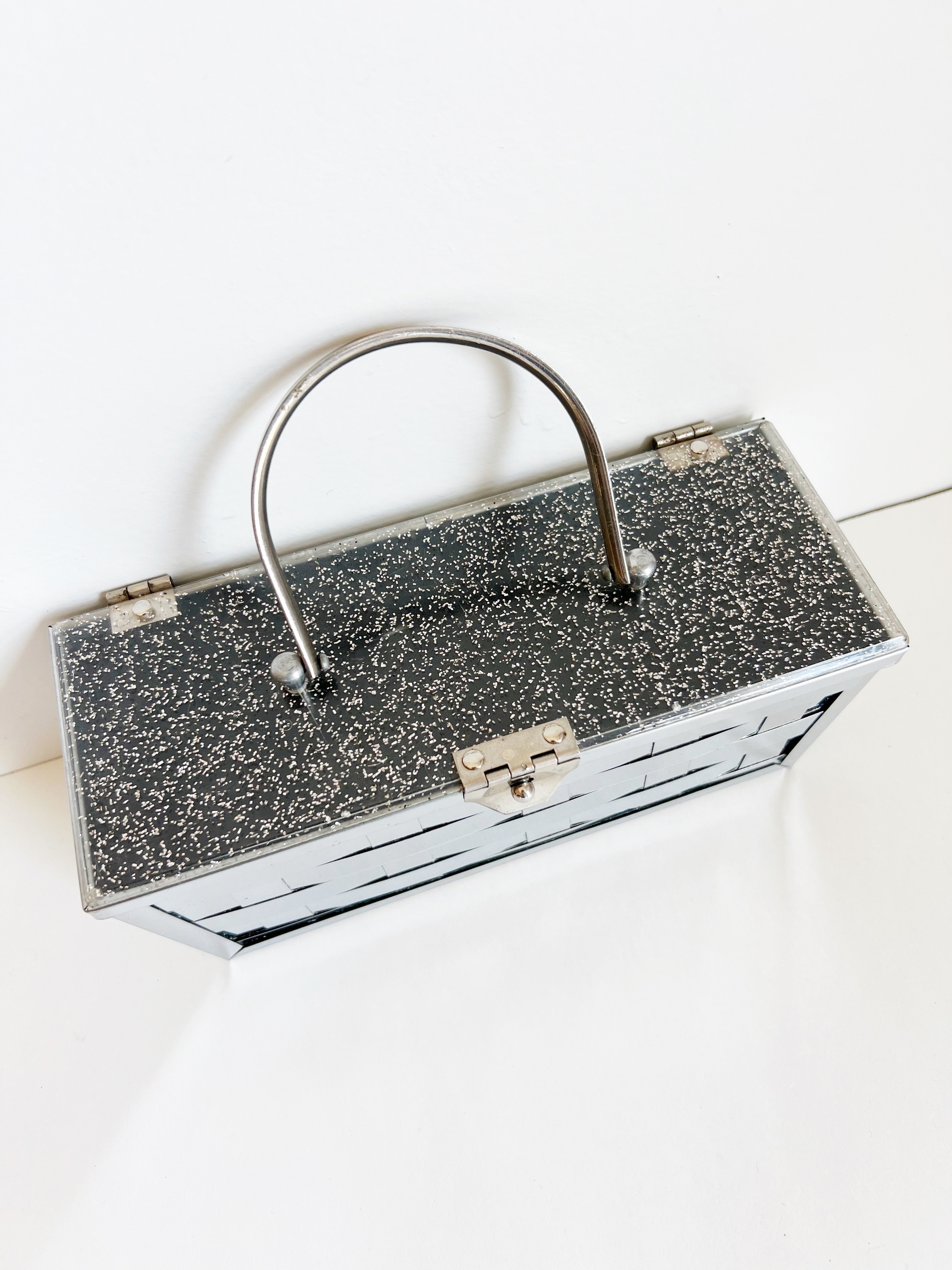 1950s Silver Confetti Lucite and Woven Metal Box Purse