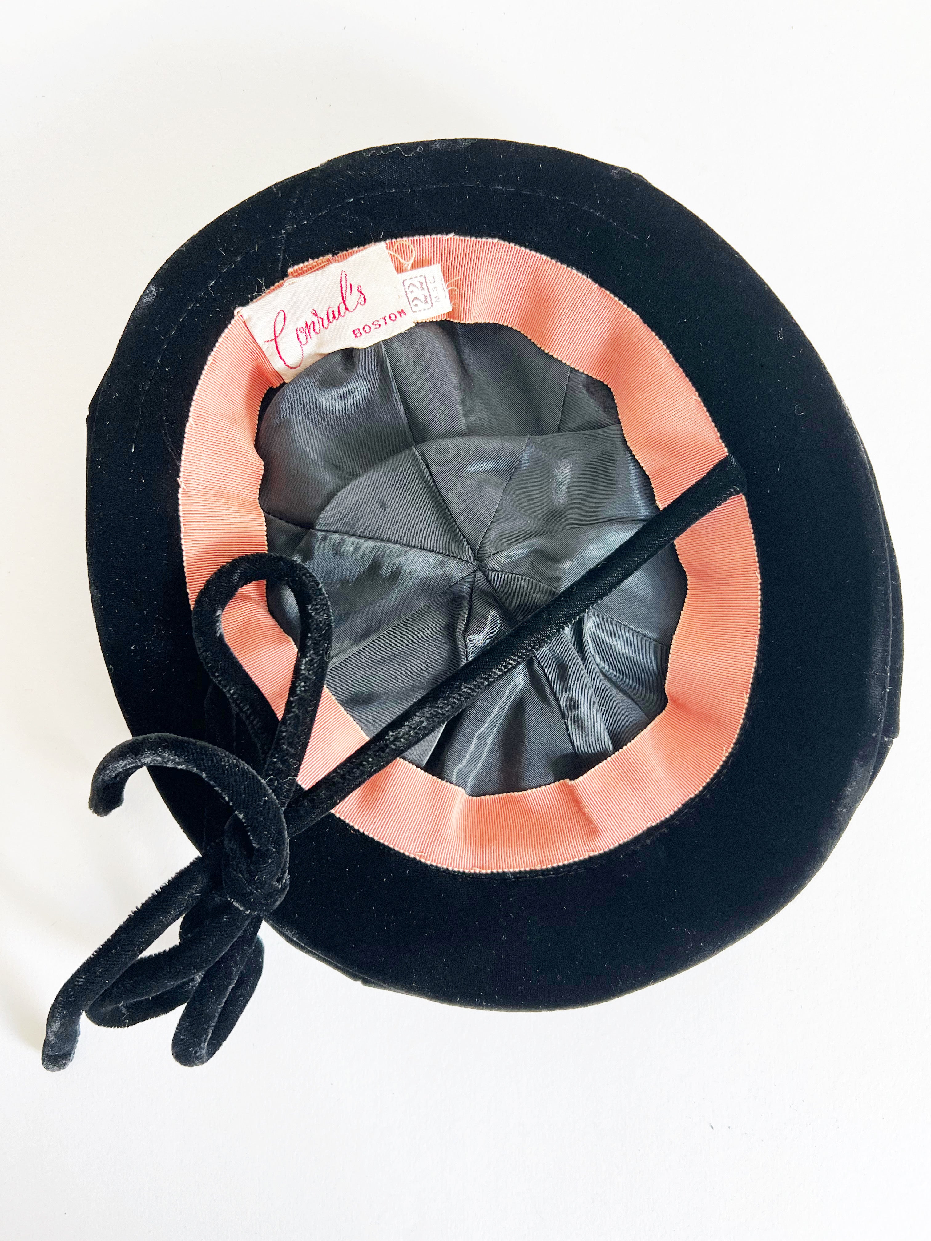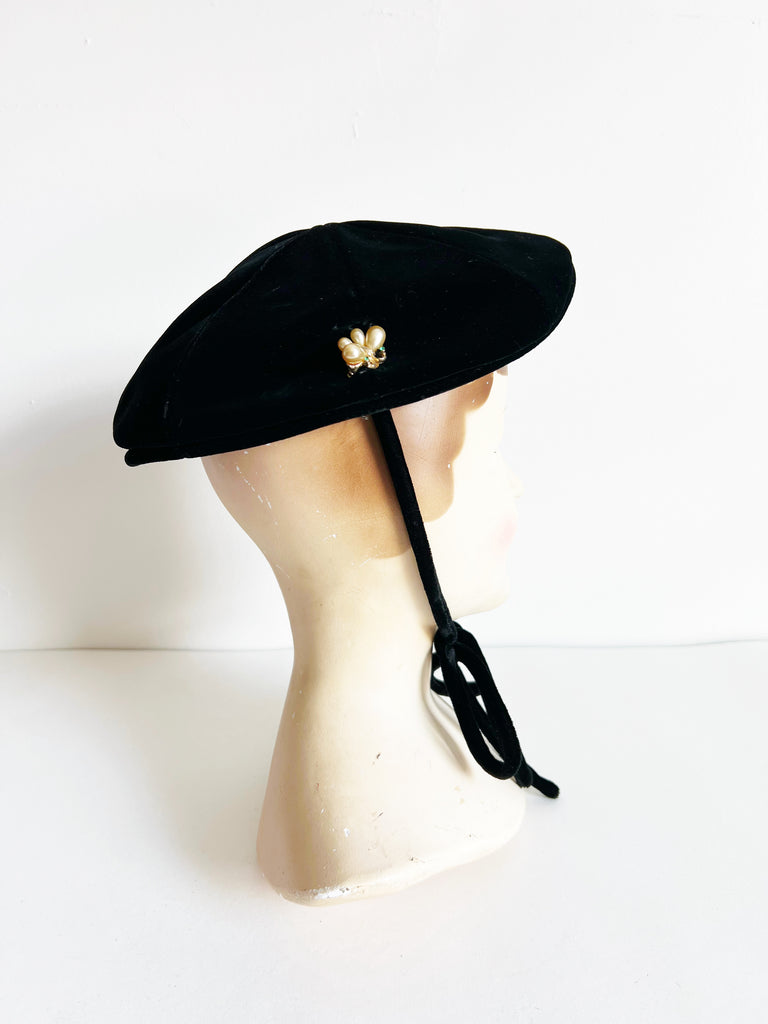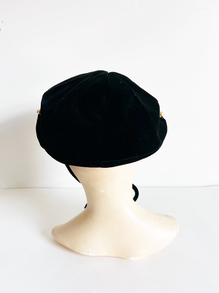 1940s / 1950s Black Velvet Cap with Bug Pins