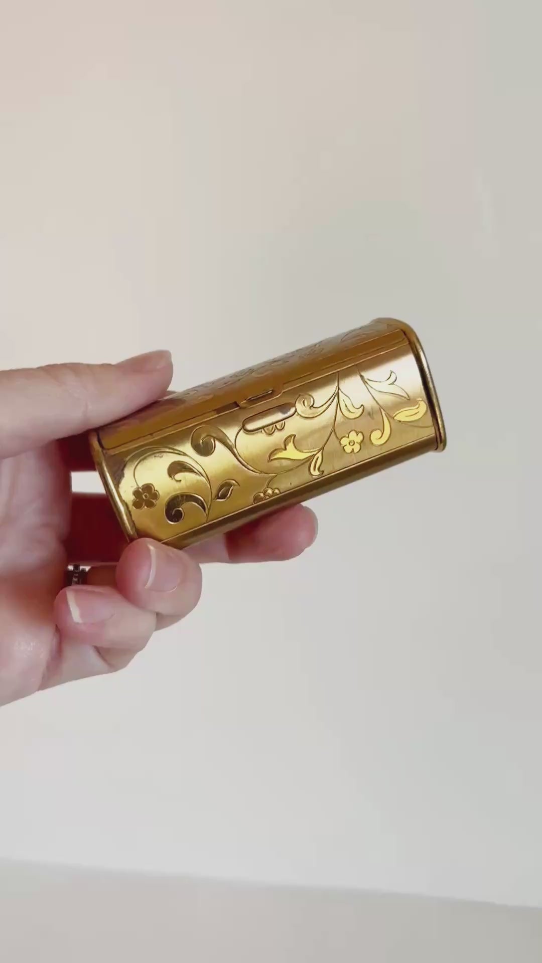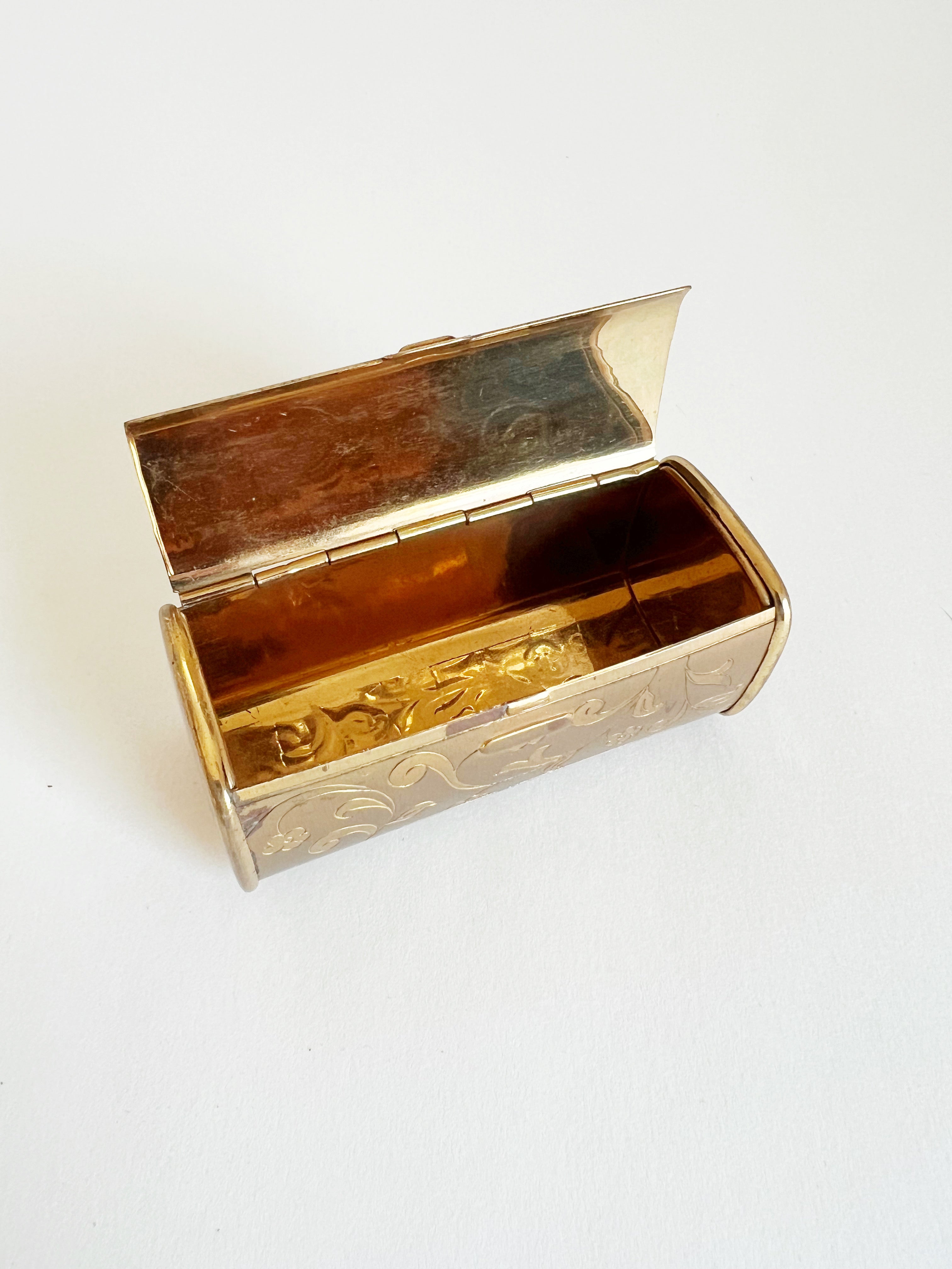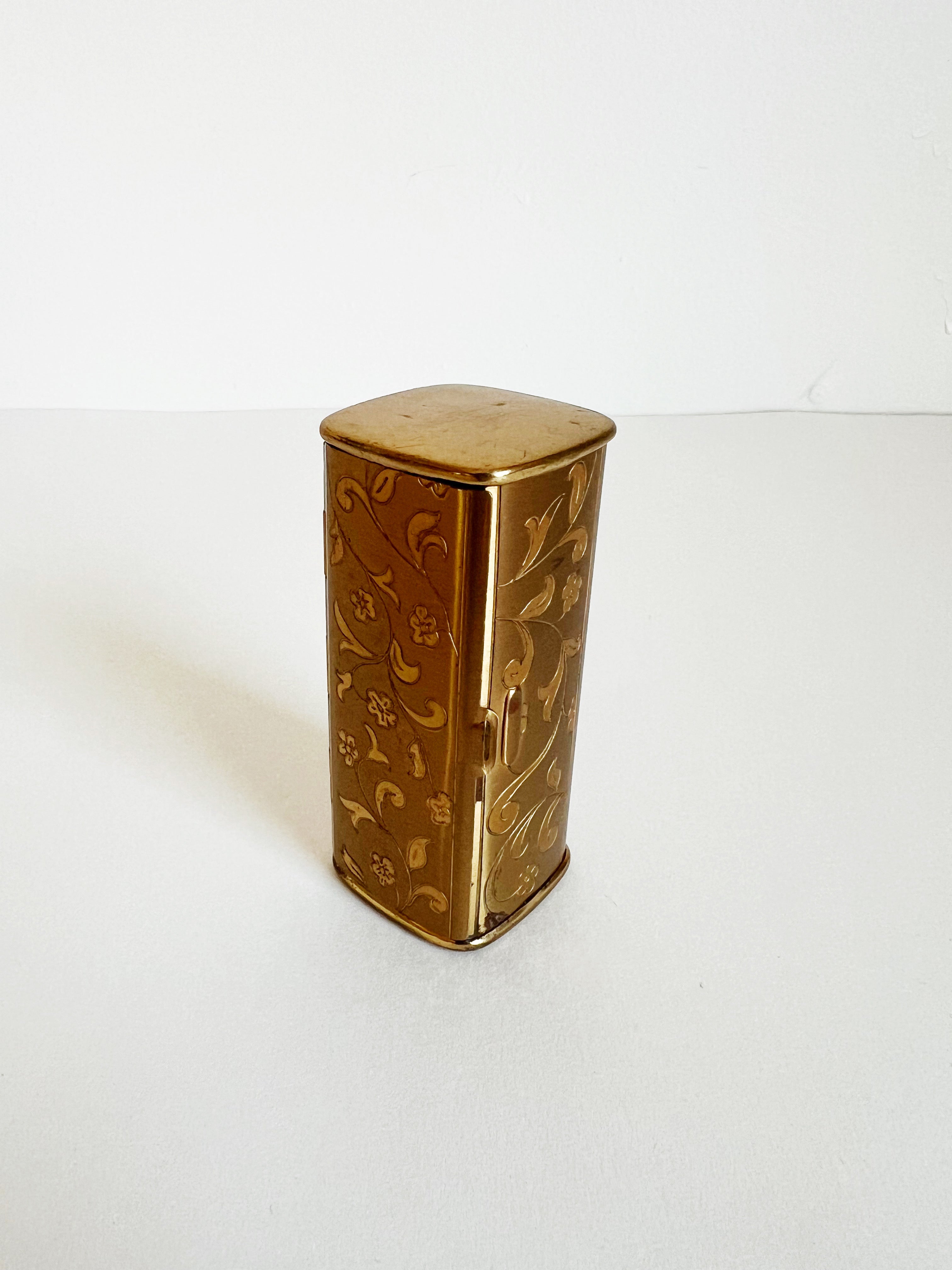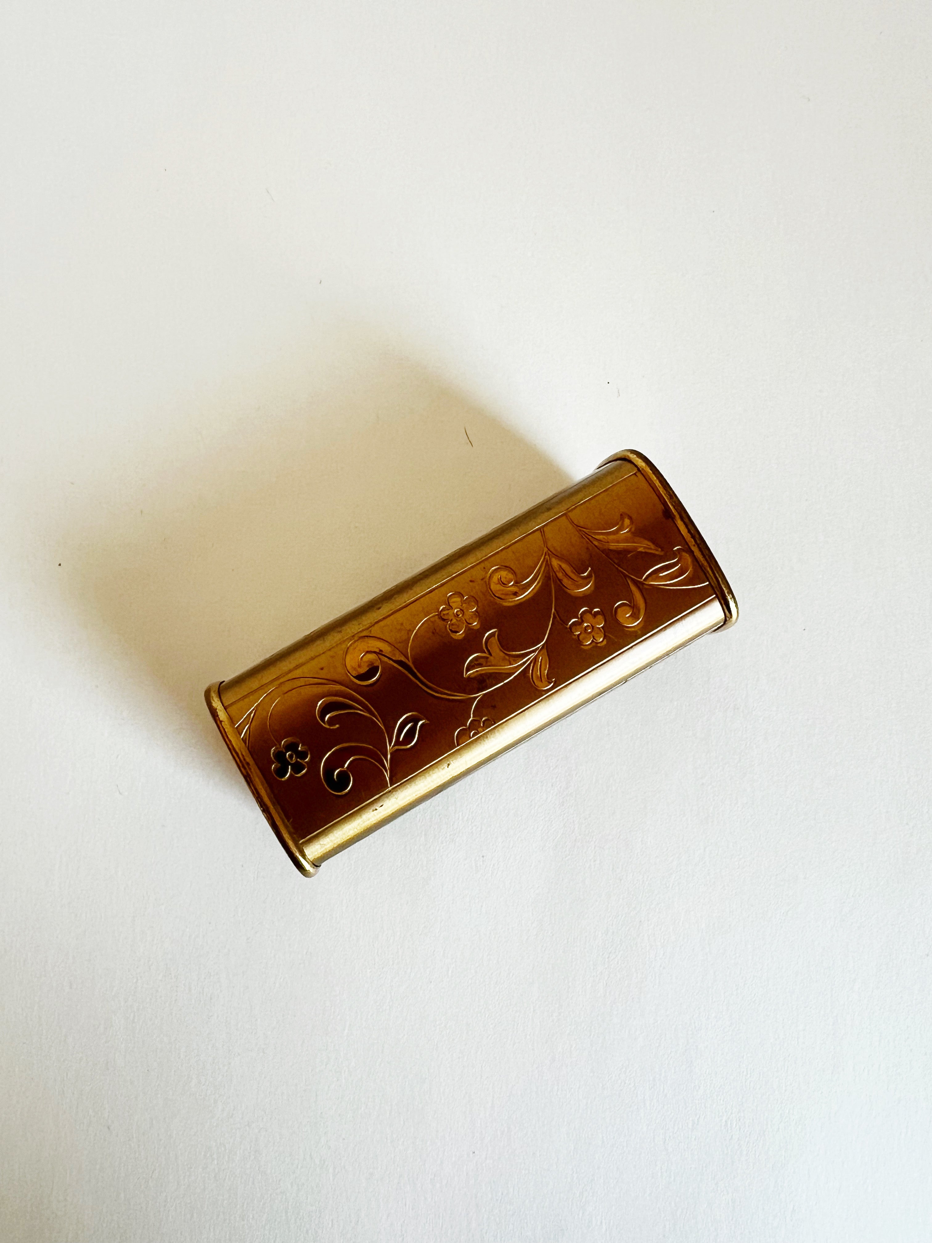1950s Etched Brass Lipstick Case