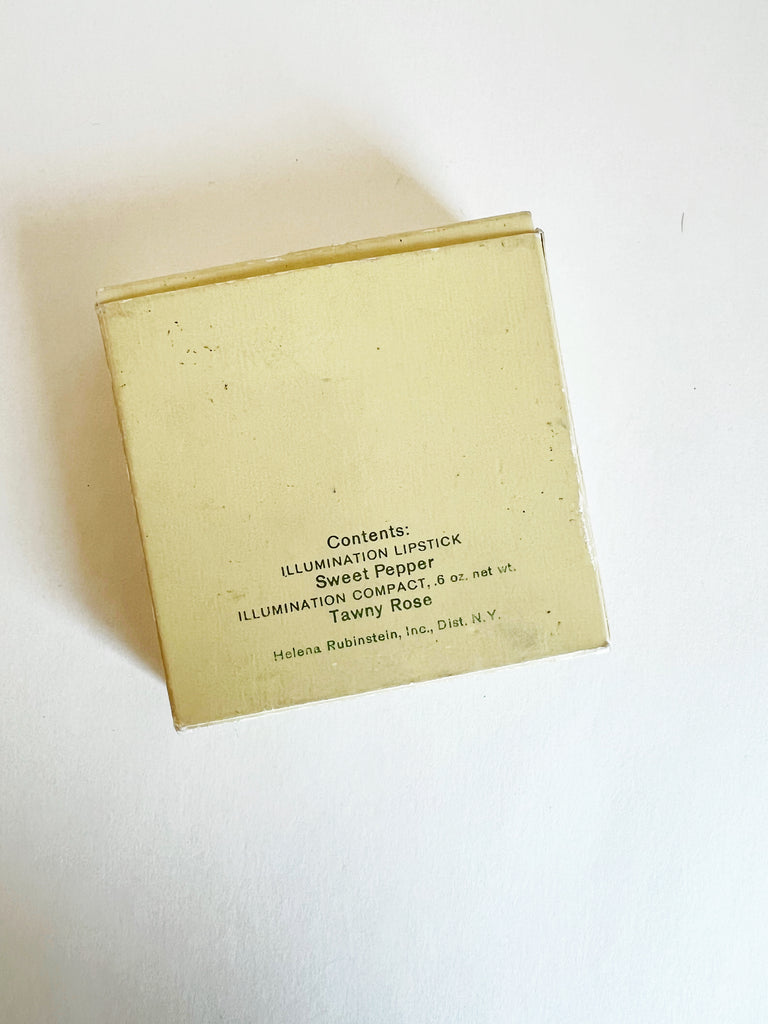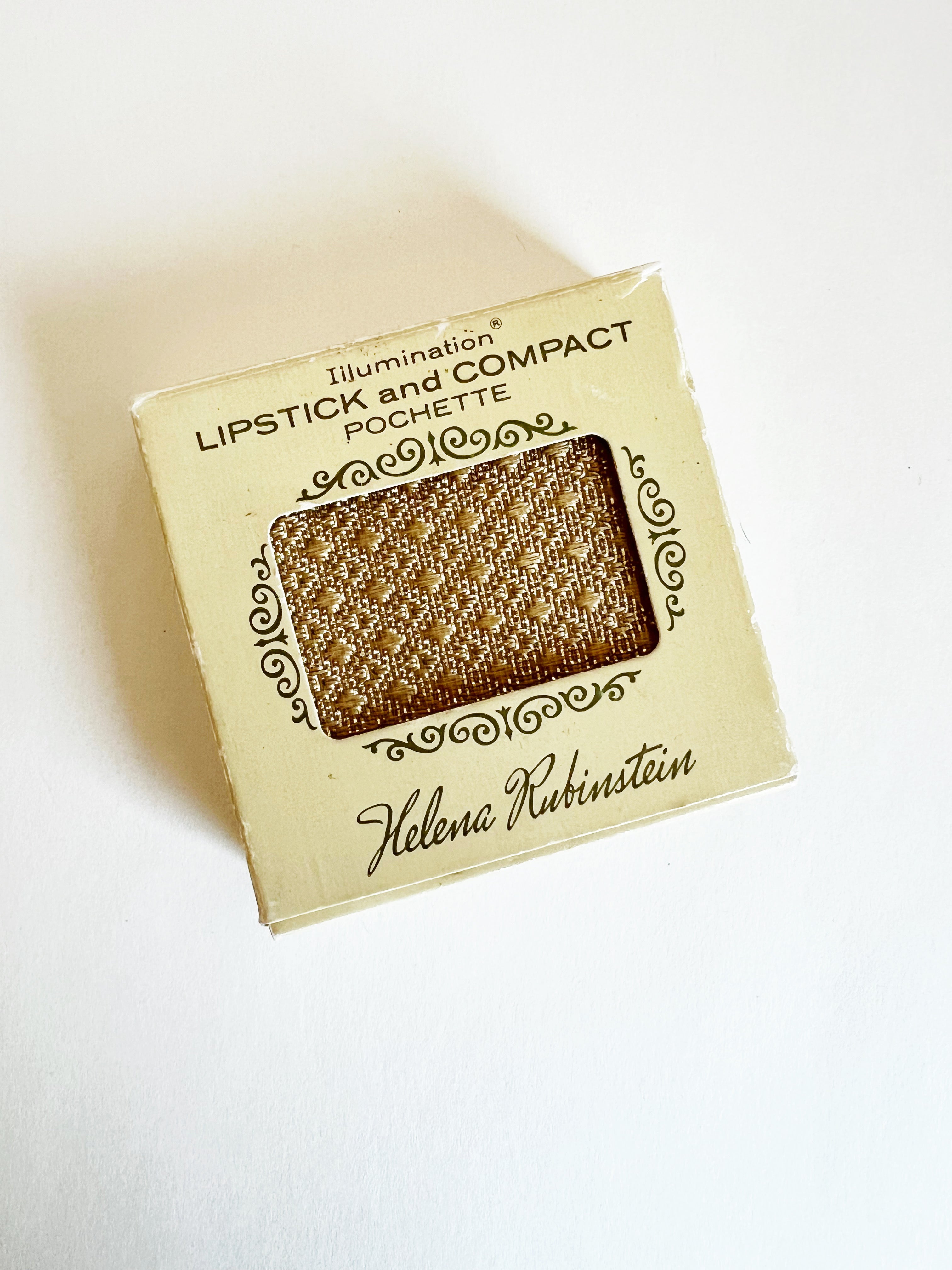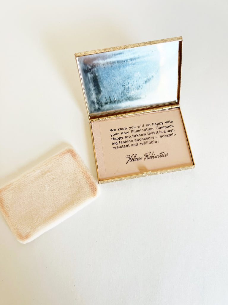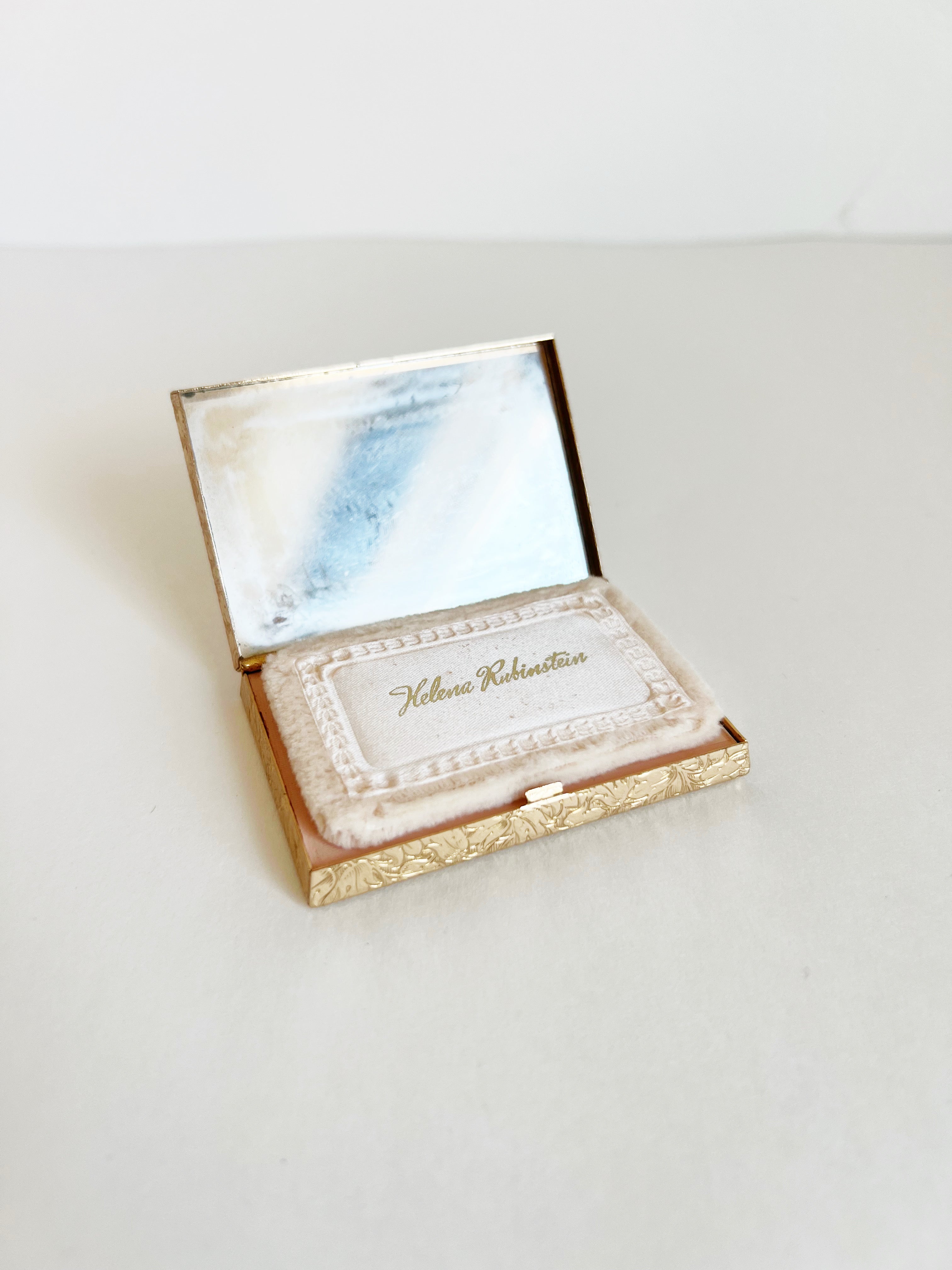 - Interior includes a mirror and the original "tawny rose" pink blush with powder puff with Helena Rubinstein cursive logo