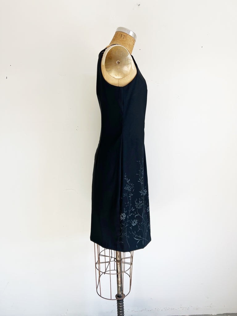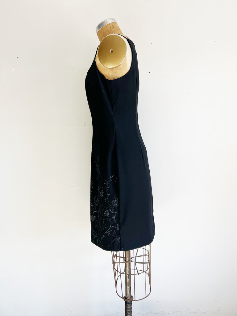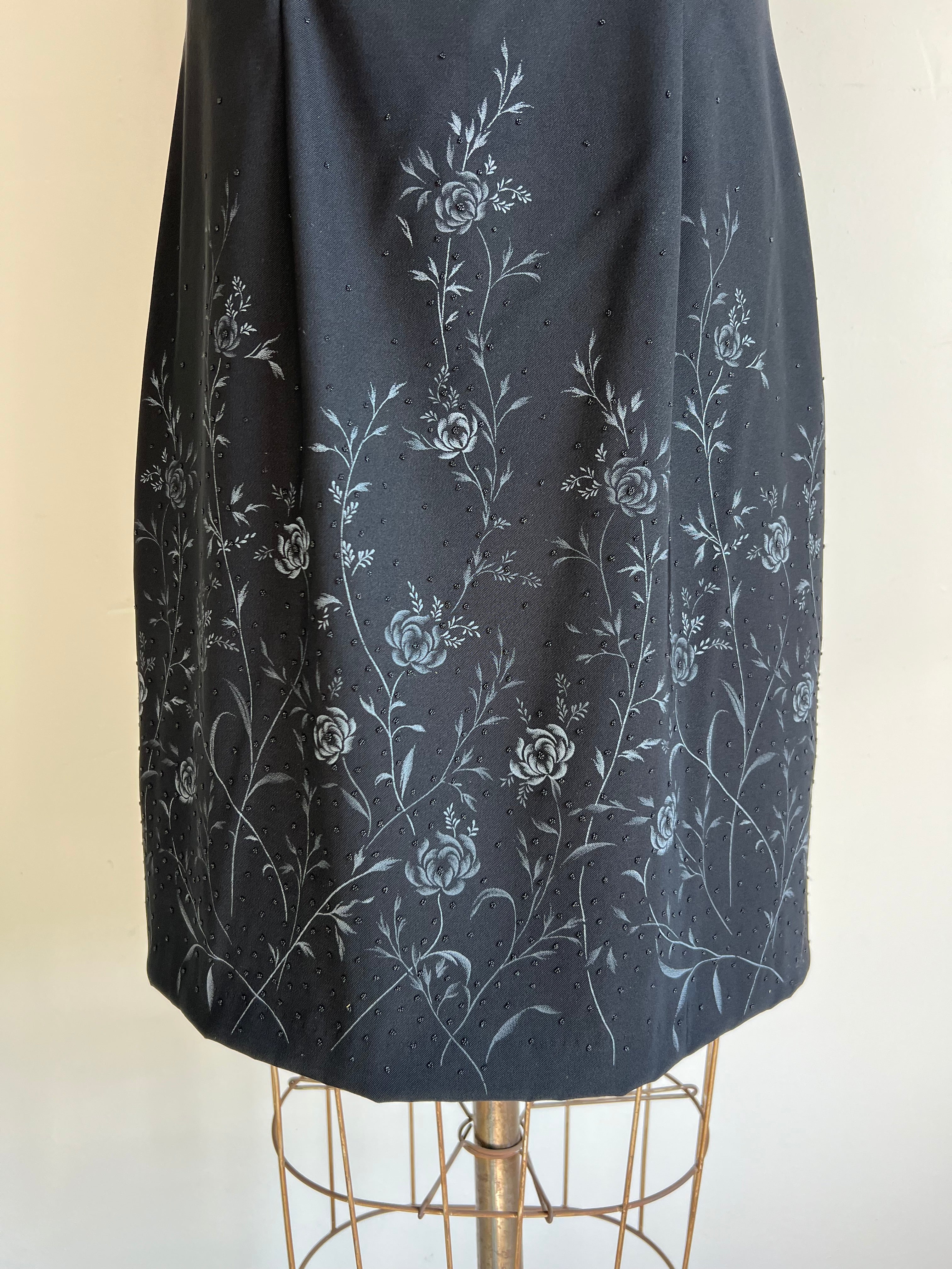 1990s Beaded Little Black Dress by CDC / Small / Medium