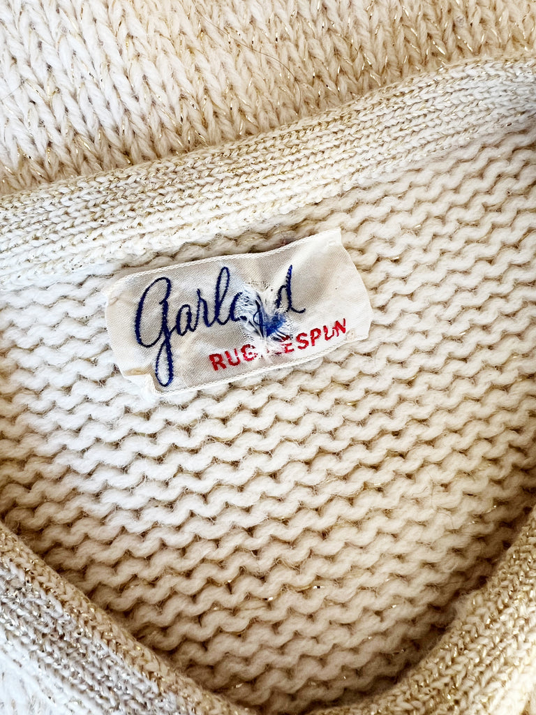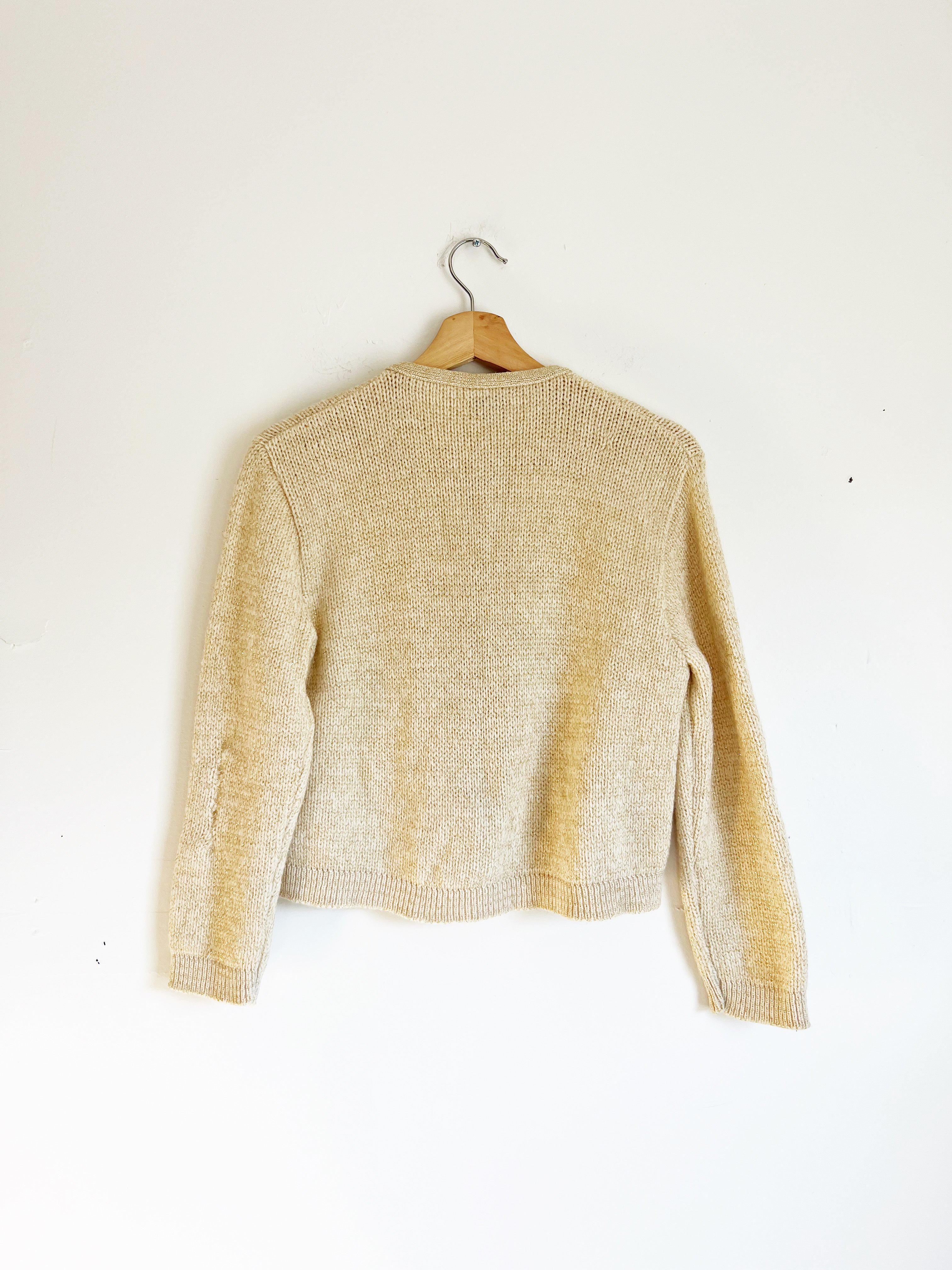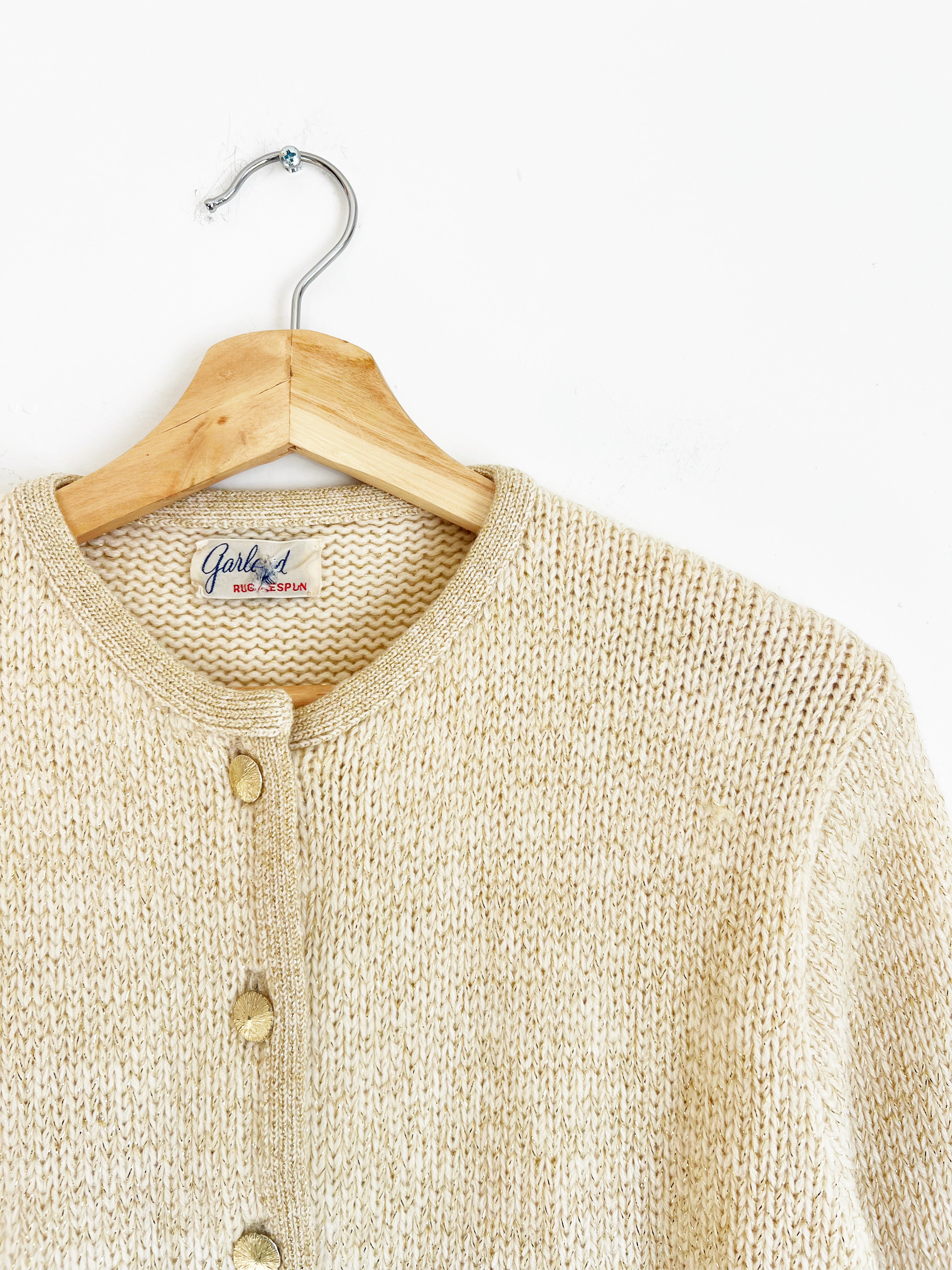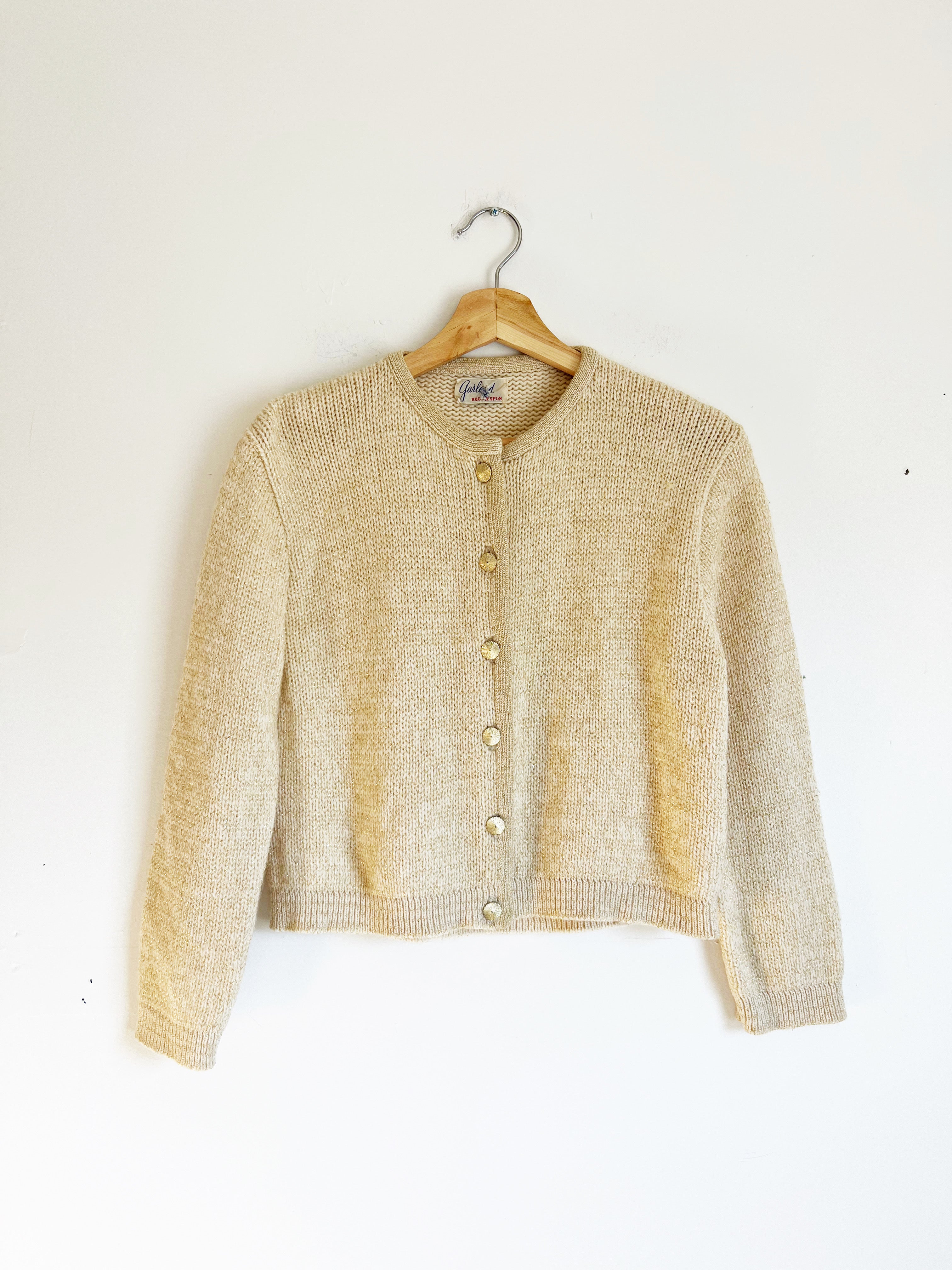 1950s Gold Metallic Wool Cardigan / Small / Medium