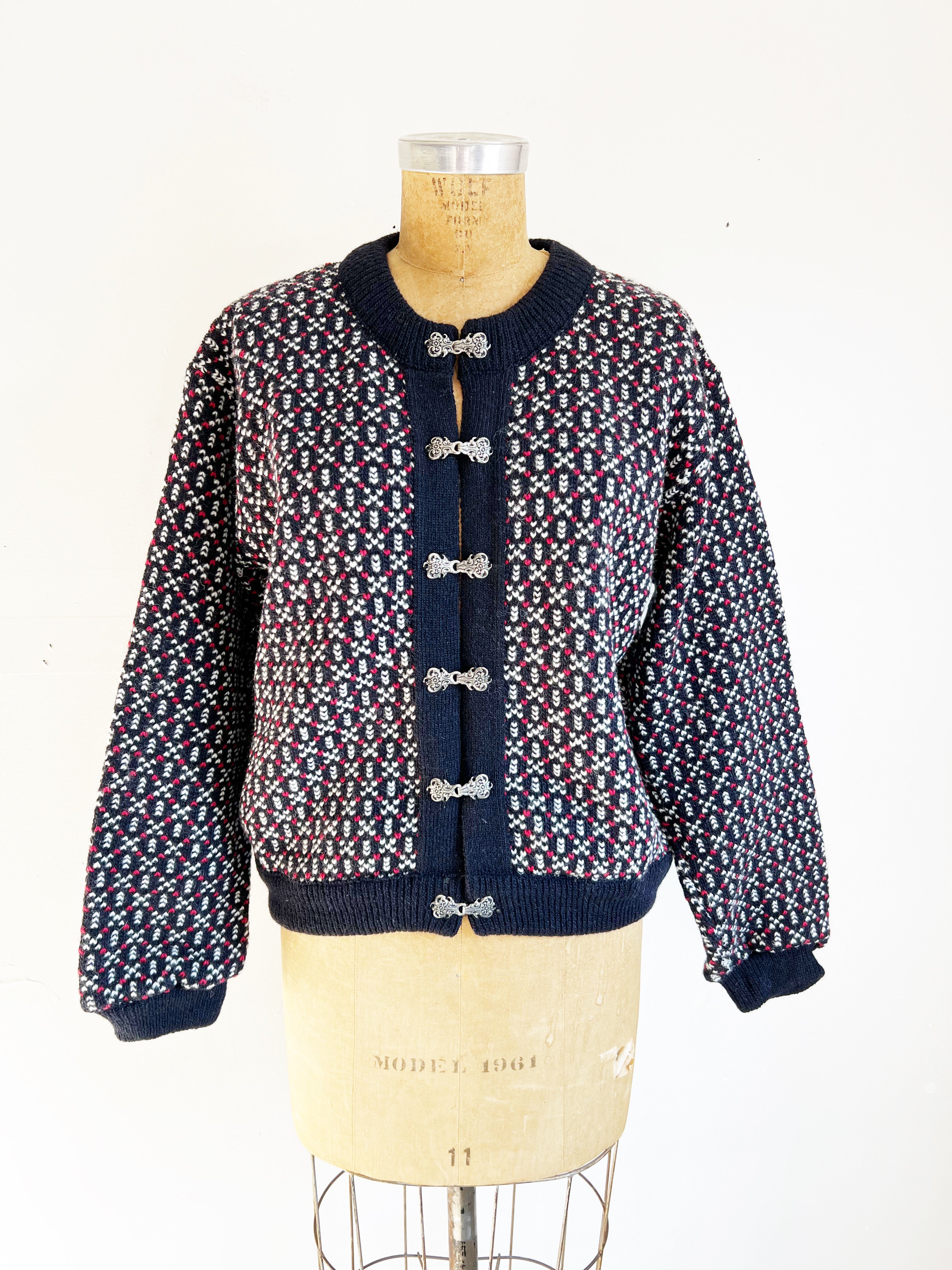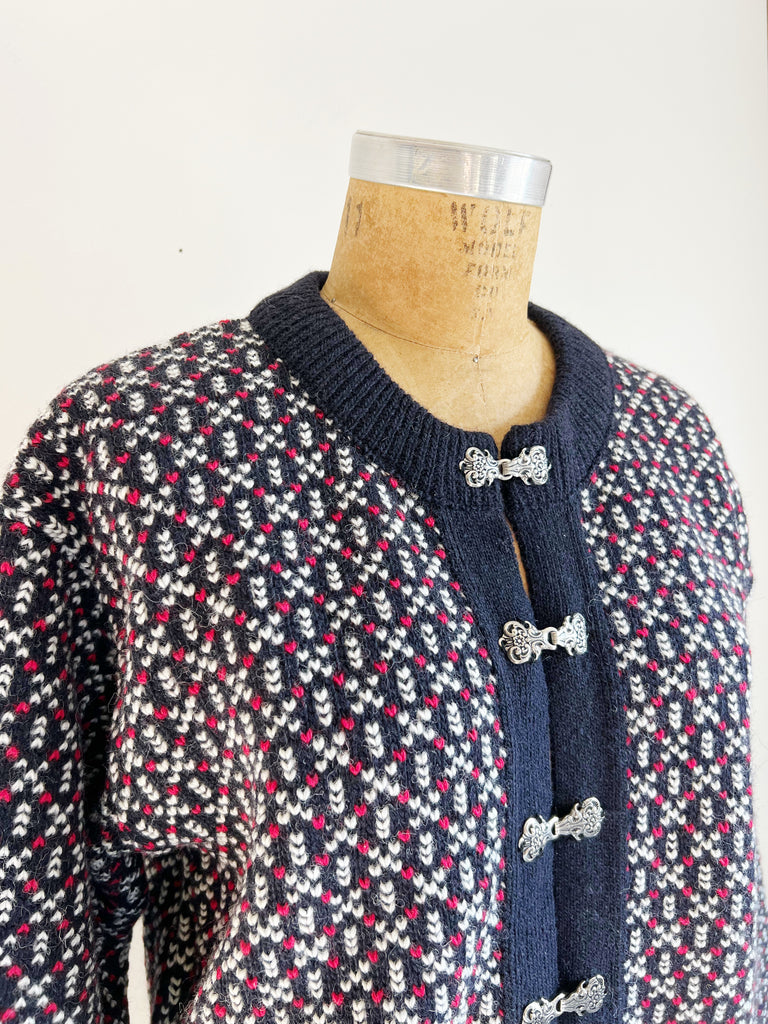 1980s Norwegian Birdseye Wool-blend Cardigan by L.L. Bean / Small
